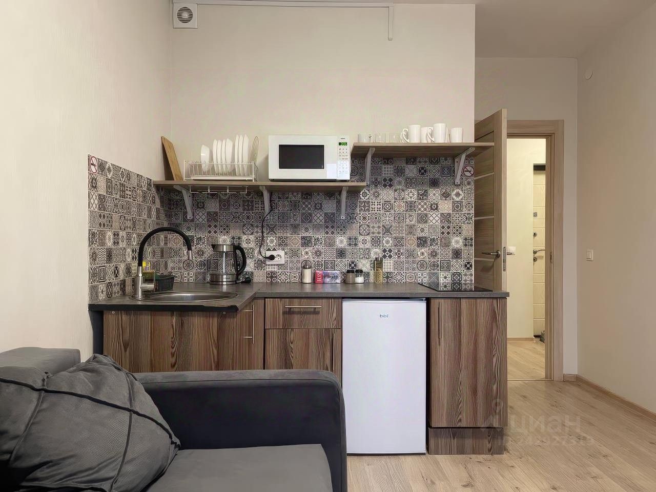 Кухня оборудована всем необходимым - мини-холодильник, микроволновая печь, плита, чайник, посуда и столовые приборы