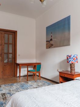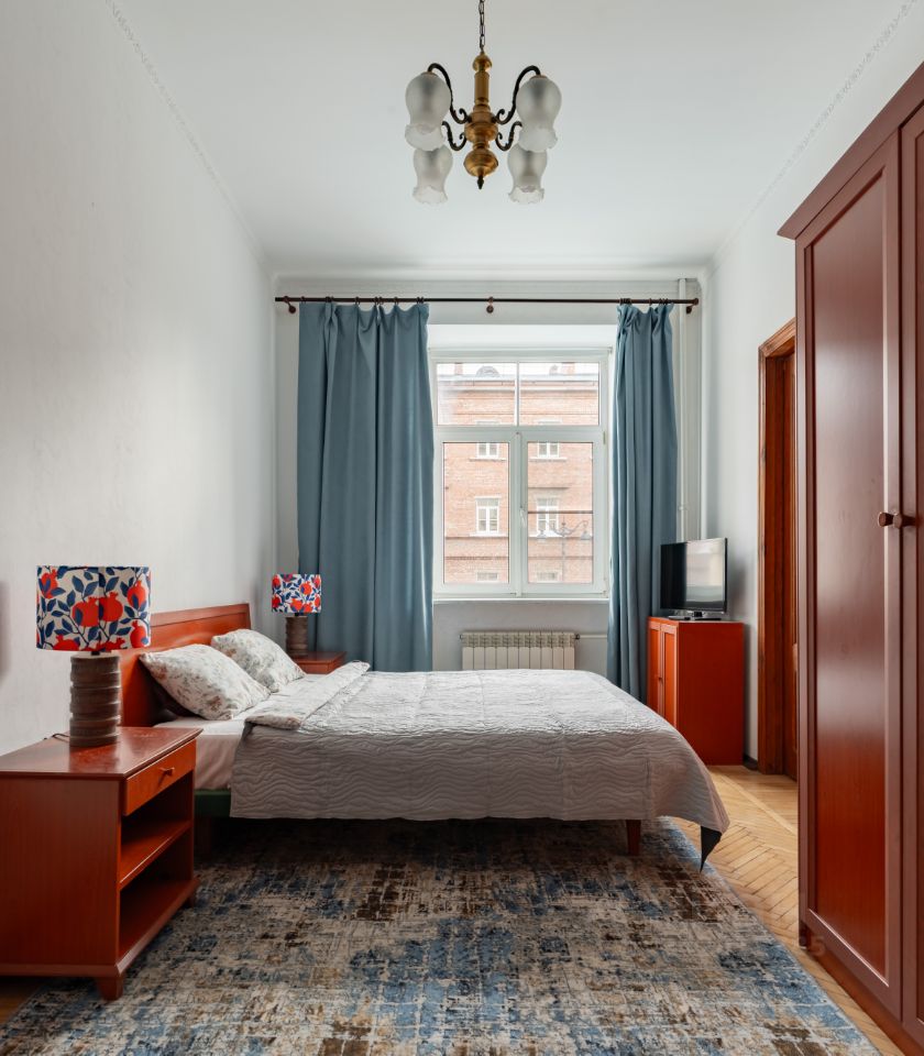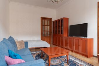 В квартире полностью оснащенная кухня (газовая плита, электрочайник, микроволновая печь, небольшая посудомоечная машина, фильтр для воды, так же вся необходимая утварь; тарелки, кружки, ложки, вилки). В комнатах три двуспальные кровати, в гостиной удобный раскладной диван. Три больших гардеробных шкафа. Конечно есть гладильная, сушильная доска, фен, утюг, пылесос.