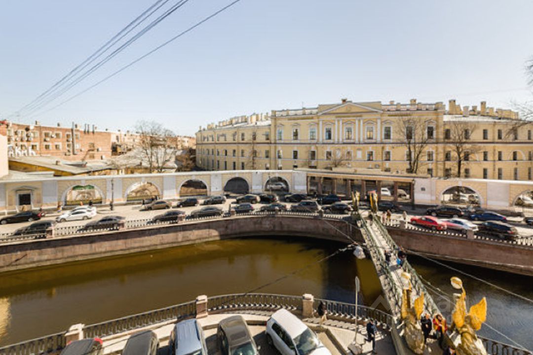 Из окон открывается прекрасный вид на канал Грибоедова и Банковский мост (Знаменитый мост с Грифонами)