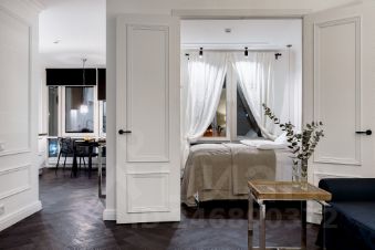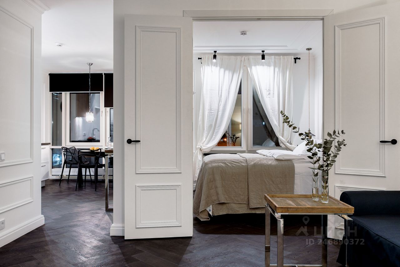 Светлая и стильная евродвушка в центре Петербурга (45 м²). Интерьер в современной классике. Новый дом апарт-отеля ArtStudio, 8 минут пешком до Невского проспекта и Московского вокзала.