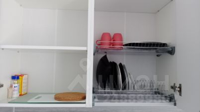 В квартире есть самое необходимое: холодильник, варочная панель, чайник, микроволновка, стиральная машина, напольная сушилка для белья, wi-fi роутер, некоторая посуда и приборы, гладильная доска, утюг.