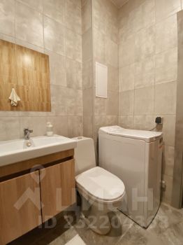 2. Большая ванная комната с полноценной ванной, стиральной машинкой и раковиной с зоной хранения.