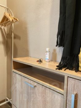 1. В студии есть отдельный коридор при входе, шкаф-купе и тумба для обуви.
