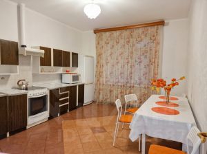Есть необходимая мебель и техника: холодильник, плита с духовкой, микроволновая печь, стиральная машина, телевизор, интернет.