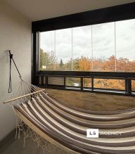 - просторная утепленная лоджия с панорамным видом (установлены крепления под гамак — можно обустроить зону отдыха)