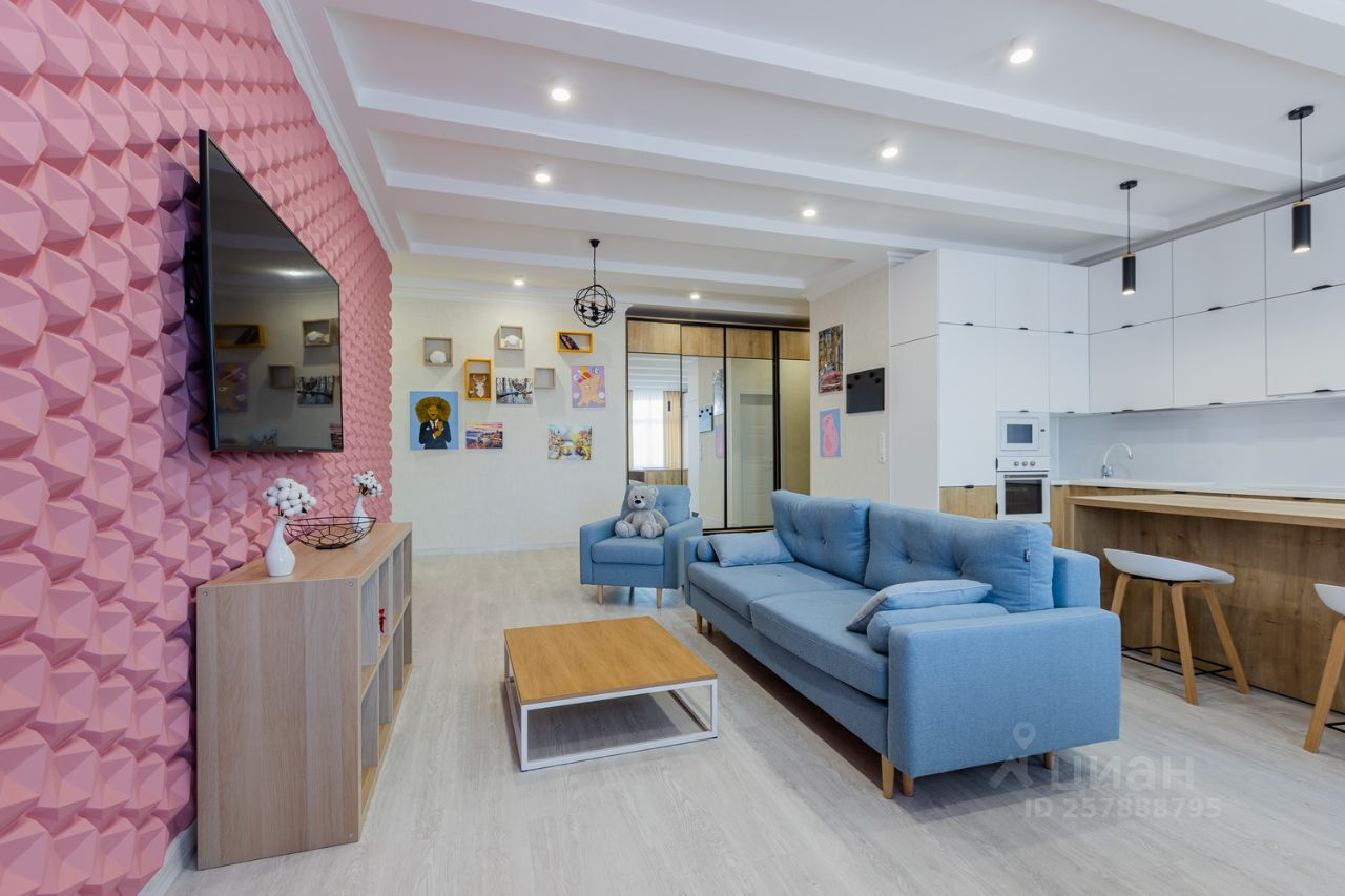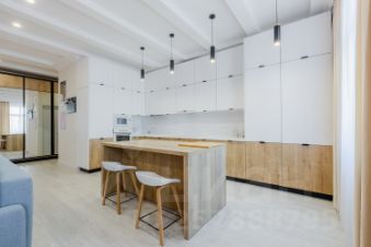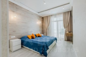 В квартире выполнен высококачественный евро-ремонт из дорогих материалов. Просторная кухня-гостиная оснащена встроенной современной кухней с системой Tip-Oh из натурального дерева и немецкой техникой: холодильник, посудомоечная машина, духовой шкаф, свч, варочная панель ,вытяжка, а также кухонным столом, диваном, креслом, телевизором, барной стойкой, выведено дополнительное освещение,гостиная светлая. В квартире оборудовано два санузла. Спальная оснащена собственной гардеробной, двухспальной кроватью с ортопедическим матрасом, прикроватными тумбами и рабочим местом. Выход на балкон из спальни. Балкон утеплен, установлен теплый пол, проведено освещение, оборудовано кресло. Вторая комната оснащена вместительным шкафом, оставили комнату пустой, для возможности заехать со своей мебелью, покупка нужной мебели обсуждается. Есть подземный паркинг, аренда оплачивается отдельно.