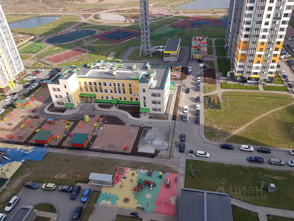 Рядом два детских сада, множество детских площадок, спортивные площадки и парк с озерами.
