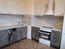 Полностью оборудованная кухня - встроенная мебель, большой холодильник, плита, посудомоечная машина, стиральная машина-автомат, обеденный стол и стулья.