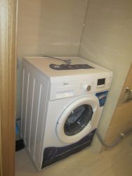 Санузел раздельный в кафеле, стиральная машина. Лоджия застекленная.