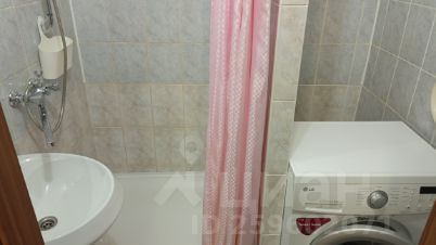 В ванной большая душевая кабина (метр на метр) с низким бортиком, тихая стиральная машина LG, фен.