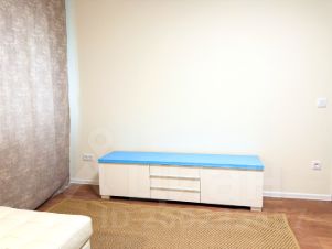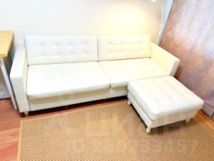 Мебель от IKEA и Мария Кухни. Есть кладовка с вешалками и полочками для обуви и вещей, раскладываемый широкий кожаный диван в гостиной и королевская делюкс-кровать шириной 180 см со встроенным местом для хранения и ортопедическим матрасом IKEA VATNESTRM. На кухне — раскладной стол.