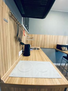 Есть вся необходимая мебель и техника, посуда и столовые приборы.