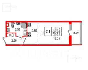 + функциональная студия 24,5 м2 + застекленная лоджия 3,60 м2;