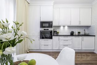 - Полностью оборудованная кухня: капельная кофеварка, посудомоечная машина, микроволновая печь, духовой шкаф, варочная панель, а также вся необходимая посуда и бокалы