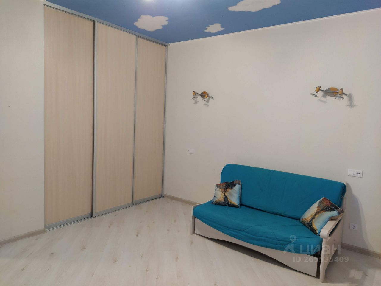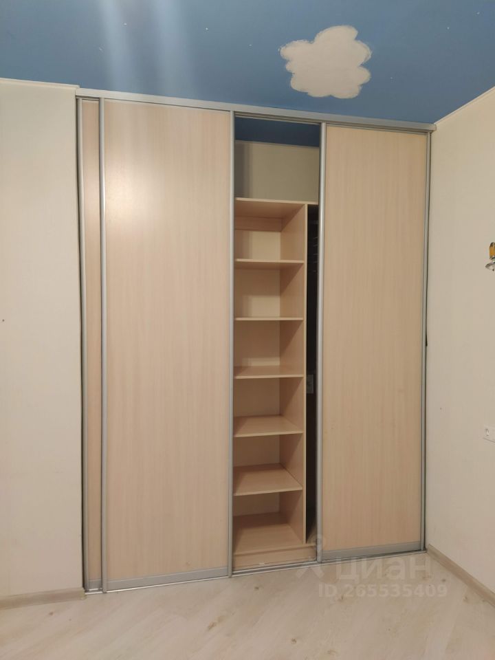 Комната (17 кв.м): в нише комнаты оборудован очень вместительный шкаф-купе, также имеется книжный шкаф, удобный комод, smart телевизор, шторы блэкаут с фотопечатью, потолок комнаты авторски расписан вручную.