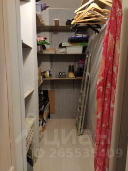Отдельная гардеробная (3 кв.м) с полками и штангой для одежды.