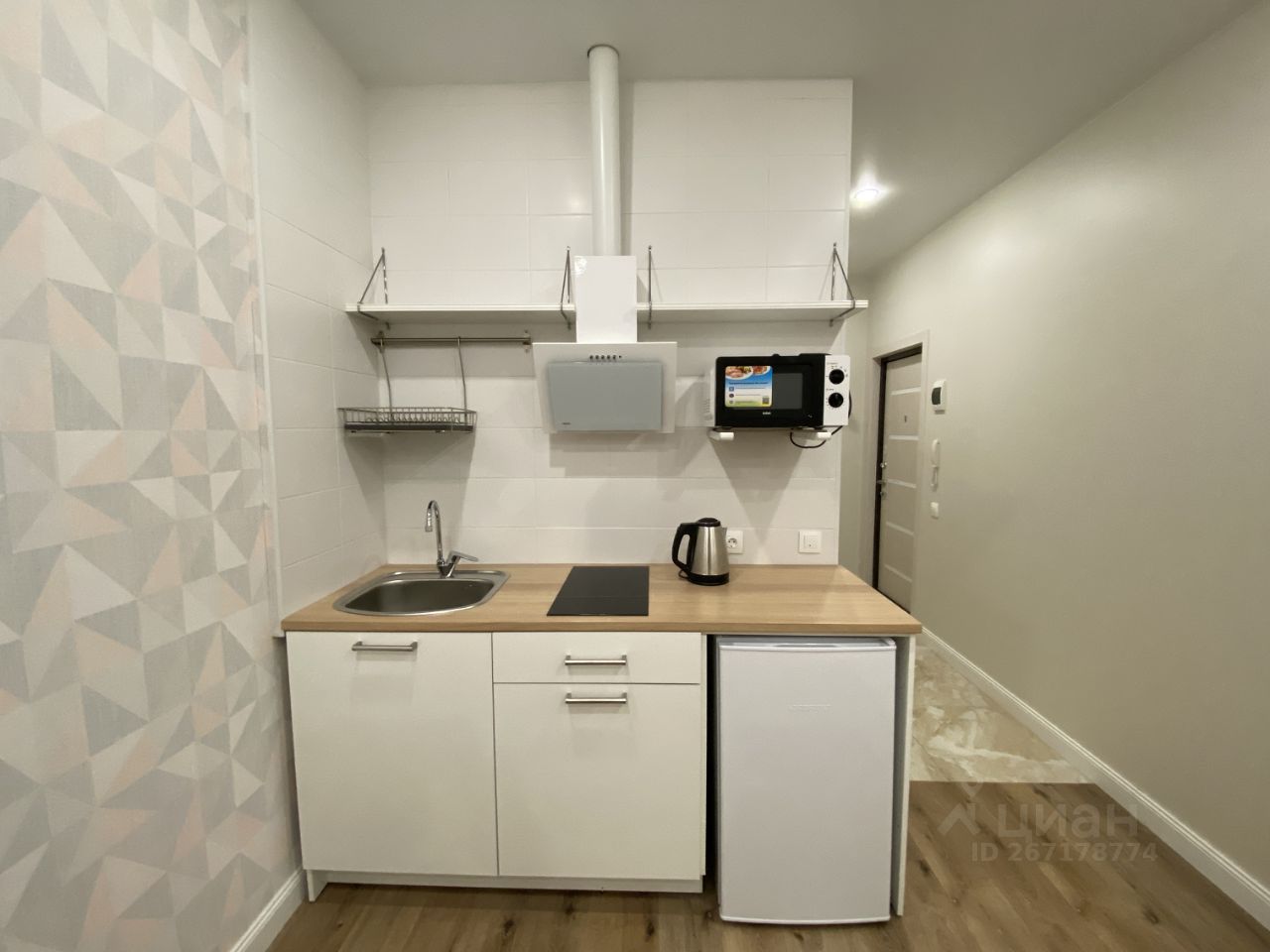 Свежий ремонт. Есть вся необходимая техника: стиральная машина, электрическая плита на 2 конфорки, холодильник, микроволновка. Домофон. С/у совмещенный.