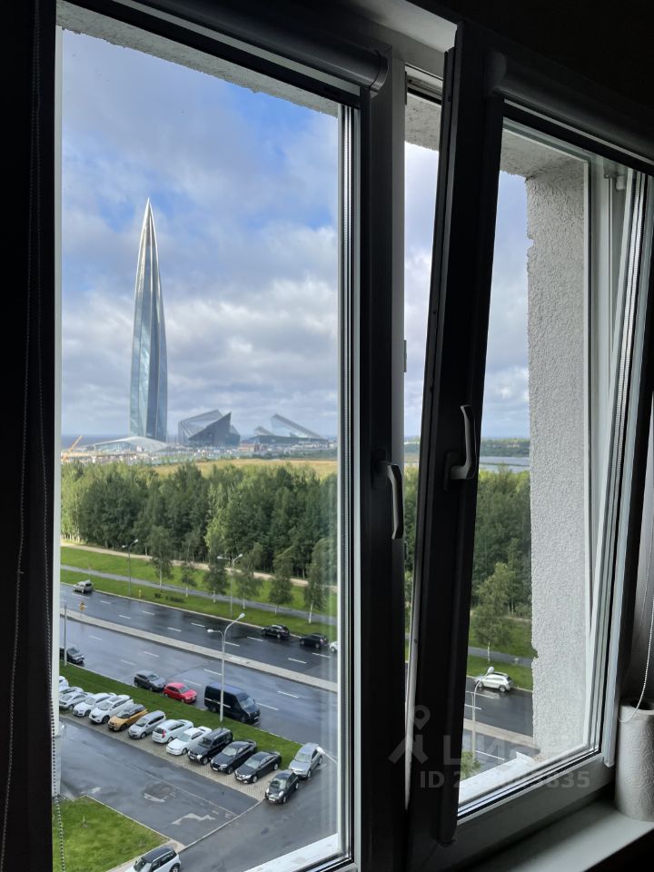 Из окон панорамный вид на Юнтоловский заказник, озеро Лахтинский Разлив и Лахта-центр.