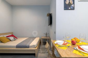 В квартире студии удобная кровать размера queen size, которая позволит вам хорошенько отдохнуть и выспаться после длительной прогулки или рабочего дня, smart tv, где можно посмотреть интересный фильм или любимую телепередачу и полностью оборудованная кухня со всей необходимой посудой для приготовления любимых блюд.
