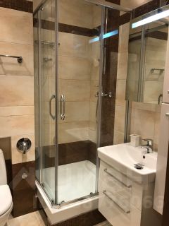 Качественный новый ремонт: паркетная доска, итальянские обои, стеклопакеты, импортная сантехника, стиральная машина Бош, большой бойлер, в ванной пол с подогревом. Кухня укомплектована всей необходимой мебелью и техникой (вытяжка, встроенный холодильник, варочная панель, духовка, чайник, телевизор, подсветка).