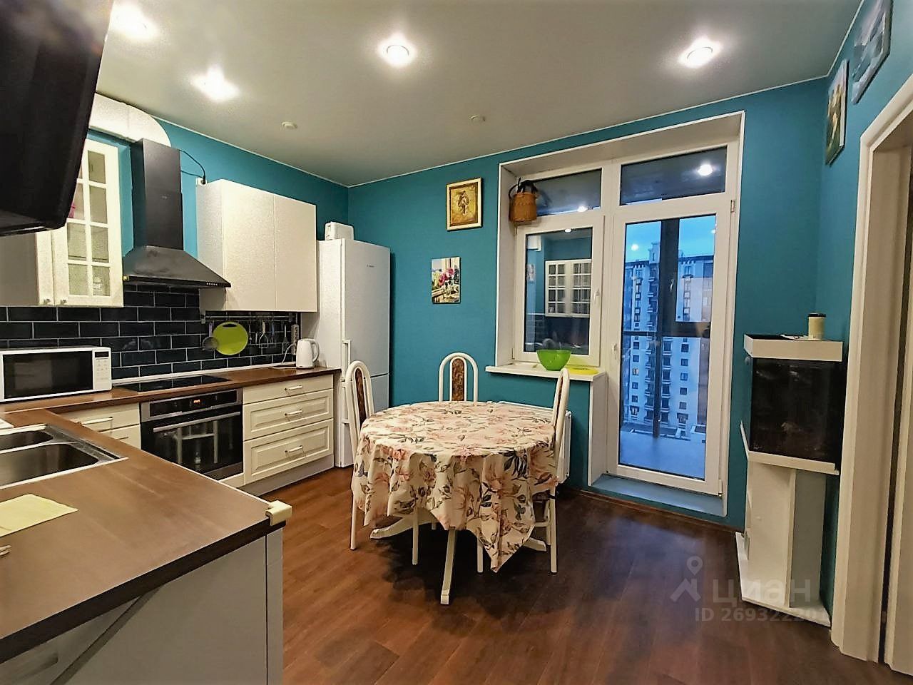 Изолированная спальня 16,5 м с двуспальной кроватью. Детская комната разделена на 2 части (по 9,5 м каждая), что очень удобно для проживания разнополых детей. В каждой есть полноценная односпальная кровать. Кухня полностью оборудована, посудомоечная машина, варочная панель, духовой шкаф, микроволновая печь, тостер, чайник, посуда предоставляется по желанию. Стиральная машина в ванной. Большая ванна. Лоджия с тёплым остеклением. Есть сейф.