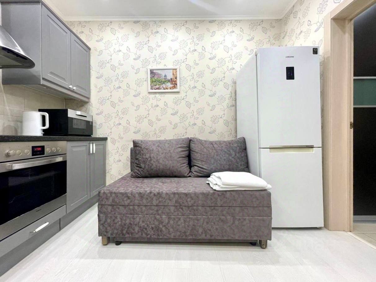 Двуспальная кровать в комнате и двуспальный диван на кухне