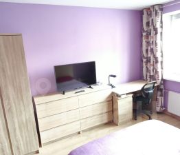 В каждой комнате свое рабочее, спальное место, шкафы для хранения вещей, телевизор ( смарт- ТВ в гостиной). В спальной- 2- спальная кровать с ортопедическим матрасом. В гостиной просторный диван- кровать. Дополнительное спальное место на кухне ( кресло- кровать для гостей)