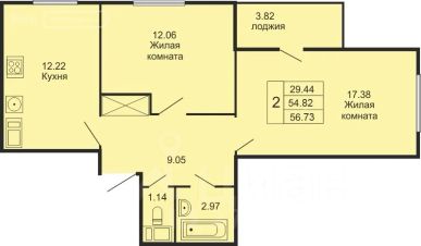 2 изолированные комнаты : 17,4 , 12.1 и большая кухня 12,2 м. Высокие потолки 2,75 м