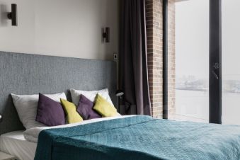 В категории предлагаются видовые Deluxe апартаменты-студии с разными интерьерами площадью по 30 м² на 5 и 6 этажах комплекса с видом из панорамных окон на реку Неву, Газпром Арену и Лахта Центр — прекрасный выбор для одного или двух гостей Санкт-Петербурга!