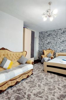В квартире есть всё необходимое для вашего комфортного проживания, спальные места: 2+2 ( двухспальный диван евро раскладкшка + двухспальная кровать) , техника: ( телевизор, стиральная машинка, холодильник, плита газовая , мультиварка, кофеварка,тостер,микроволновая печь ,фен ,утюг), посуда, постельное бельё, полотенца, средства личной гигиены , а также чай , сахар. Цену за сутки просьба уточнять ! Цена может меняться от количества человек, количества дней , дня недели ( каникулы, праздники мероприятия) Время заезда с 15:00, выезда до 12:00 ( другое время заезда и выезда обговаривается индивидуально)!!!! С животными только по договорённости и только за отдельную плату!