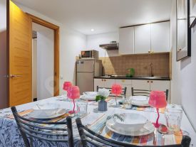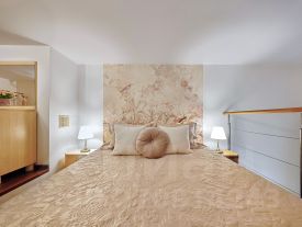Двухуровневая планировка: спальня находится на втором уровне, что обеспечивает уединение и комфорт для сна. Внизу расположены: светлая гостиная с телевизором и удобной зоной отдыха, кухня, хорошо оборудованная для приготовления еды (плита, холодильник, посуда, микроволновка), санузел с душем и биде. Установлен водонагреватель на 100 литров, поэтому горячая вода всегда есть. Квартира подходит для проживания до 4 гостей.