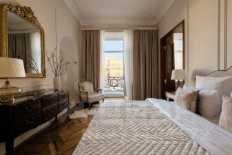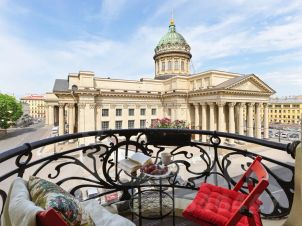 Апартаменты 120 кв.м. с 2 раздельными спальнями, 2 санузлами, сауной, просторной гостиной, 2 балконами и окнами с восхитительным видом на Казанский собор. Атмосфера покоя и умиротворения, бесподобная энергетика. Много солнца. Лифт. Вход в парадную с улицы.
