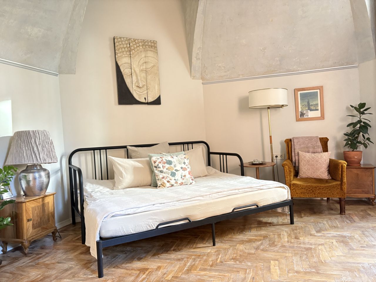 Миниатюрная квартира с уникальной восьмигранной комнатой и сводчатым аутентичным потолком! В квартире сохранены старые двери и паркет. Несмотря на небольшое пространство, в квартире есть все необходимое для комфортного проживания.