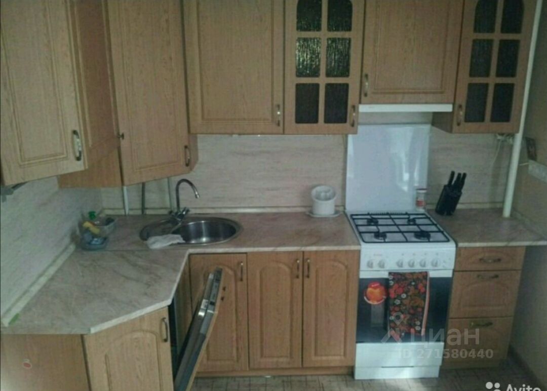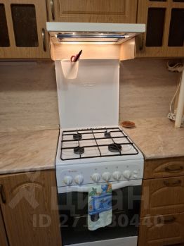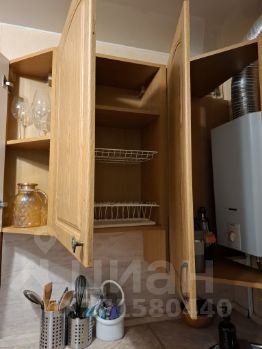 >кухня 8 кв.м. -линолеум, кухонный гарнитур с встроенной посудомоечной машинкой (ПММ), стол, стулья, вытяжка, микроволновка, холодильник, газовая плита, газовая колонка, вся необходимая посуда;