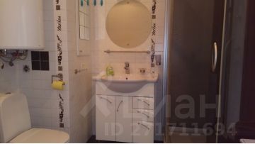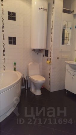 Просторный совмещённый санузел с большой угловой ванной и душевой кабиной.Есть стиральная машина-автомат и бойлер.Полы в санузле с подогревом.