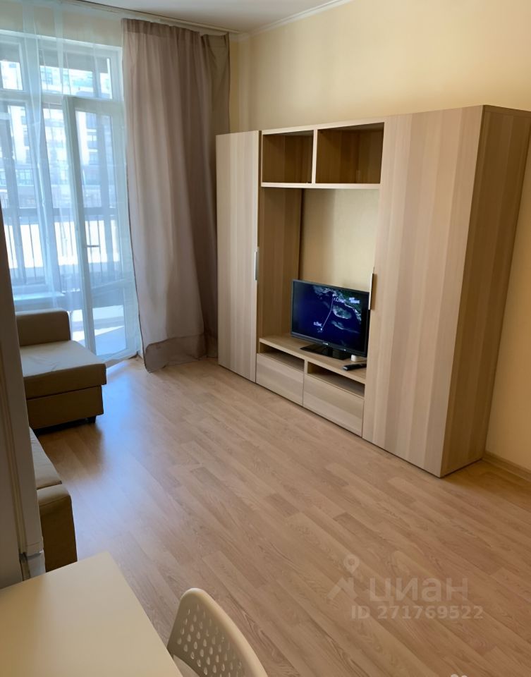 В квартире выполнен свежий евроремонт, здесь есть все необходимое для комфортного проживания. Просторная студия оснащена современной мебелью как в комнате, так и на кухне. Из техники имеется холодильник, телевизор и стиральная машина, что избавит от лишних забот. Санузел совмещенный, с душевой кабиной. Также в квартире есть лоджия, где можно отдохнуть после насыщенного дня.