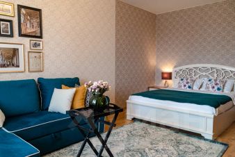 Наша квартира расположена в нескольких минутах ходьбы от парка и дворца, в окружении древних исторических памятников, создающих неповторимую атмосферу. Она полностью меблирована, есть всё для комфортного проживания: