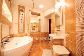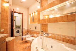 Квартира в отличном состоянии. По планировке: просторная и светлая кухня-гостиная, 2 изолированные спальни, 2 ванные комнаты, одна с душевой кабиной, другая с гидромассажной ванной, отдельная постирочная комната, множество подсобных помещений - 2 кладовки, встроенные шкафы. Имеется вся необходимая мебель и бытовая техника, в том числе посудомоечная машина, кофе машина.