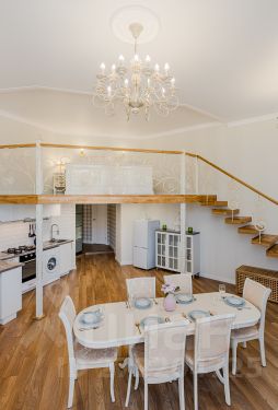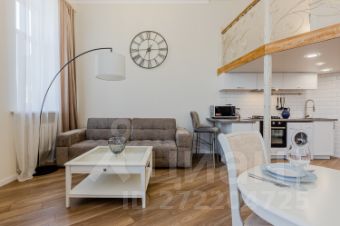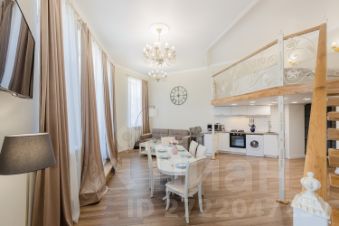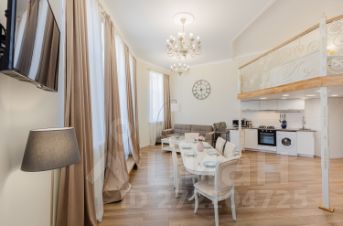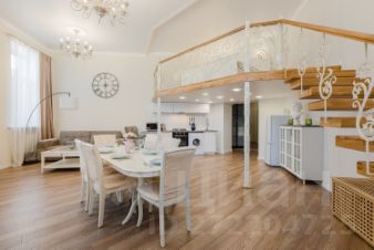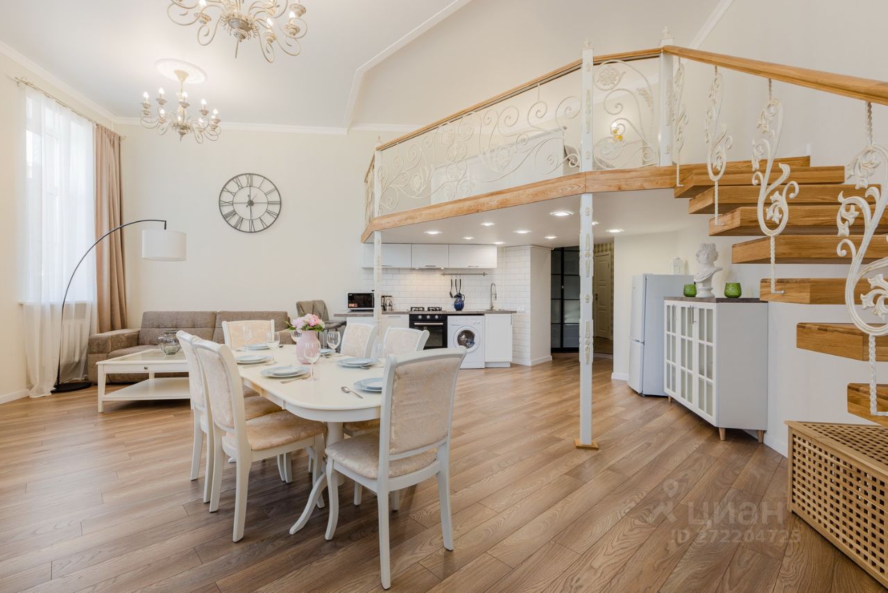 Стильная и уютная двухуровневая квартира с балконом расположена в историческом центре Петербурга, напротив театра Ленсовета.