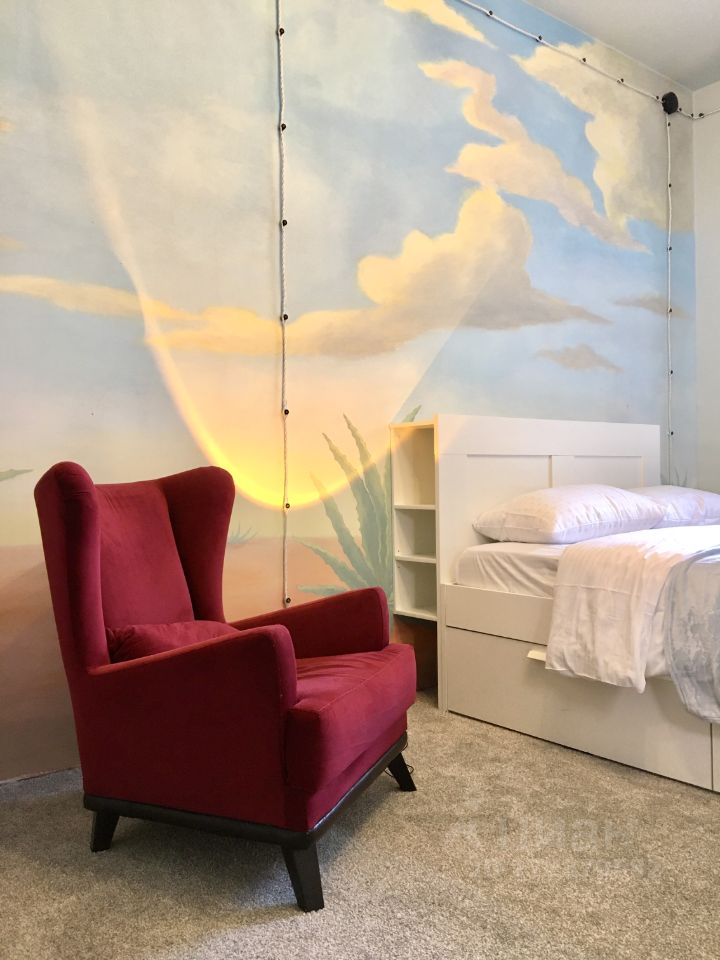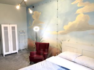 Апартаменты в стиле лофт и представляют из себя 30 метровую кухню-гостиную и спальню с двуспальной кроватью и в ручную расписанной стеной.