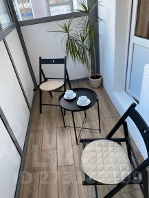 Застекленный балкон оборудован зоной отдыха.
