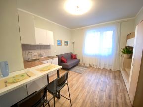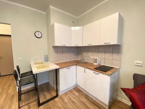 Предлагаю в аренду на длительный срок просторную светлую студию (25 м2, 6 этаж) с видом на тихий двор. Удобная транспортная развязка, остановка рядом с домом, метро Комендантский 15 минут транспортом. Хорошая развитая инфраструктура, магазины, ТЦ, парк Озеро Долгое, Юнтоловский заповедник в пешей доступности. Квартира оснащена полностью только новой мебелью и техникой (холодильник, стиральная машина, микроволновка, плита, чайник, телевизор Wi-Fi, пылесос, роутер для интернета, сушилка для белья, гладильная доска, кухонная посуда и приборы, постельные и ванные принадлежности). Очень удобное спальное место (раскладная кровать Икеа).