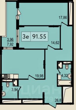 План квартиры в фото , это большая просторная Евро трешка с лоджией 8 метров и кухней 20 метров