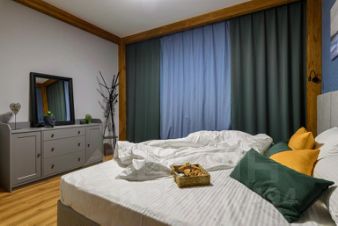 Номер уютно обставлен и оснащён необходимым, чтобы отдохнуть после долгого и насыщенного дня. Имеются телевизор. Оснащение зависит от выбранной категории номера.