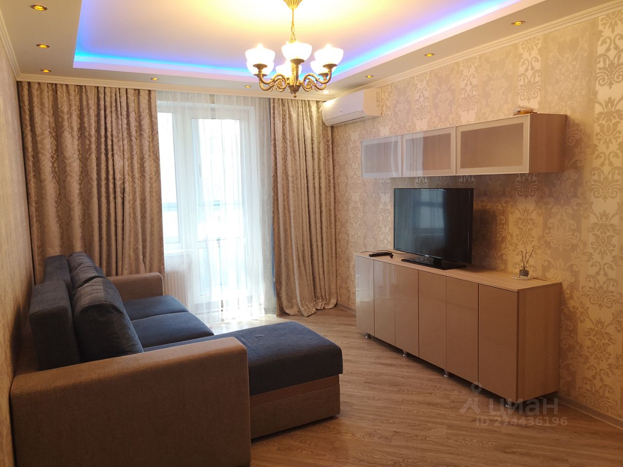 Комната 18,3 м, кухня 9,8 м. Санузел совмещённый, ванна. Просторный балкон. Квартира полностью оборудована мебелью, техникой и предметами необходимой утвари. В комнате раскладной диван европейского производителя, встроен шкаф-купе с оснащением, установлен кондиционер, телевизор. В кухне встроенная посудомоечная машина, стиральная машина. В прихожей шкаф для верхней одежды.