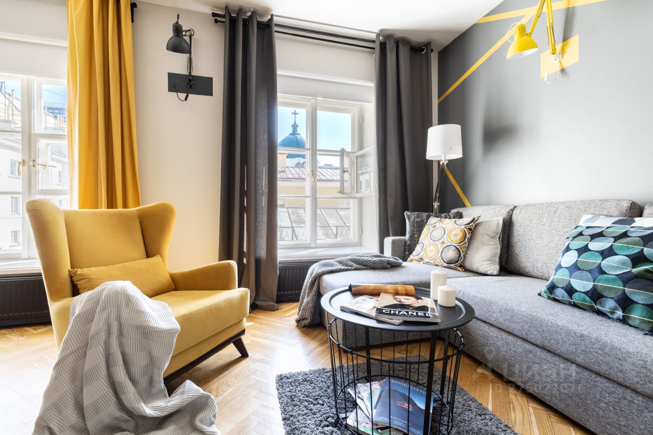 ДЕТАЛИ. Квартира находится в доме базилики Святой Екатерины — памятнике архитектуры 1835 года. Все девять окон выходят во двор, на купол базилики: в вечернее и ночное время здесь очень тихо, несмотря на близость к Невскому проспекту
