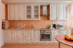 Оборудованная кухня, где есть все для полноценного приготовления пищи.