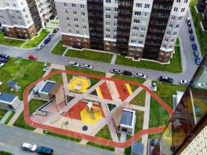 Остеклённая лоджия с видом на зеленый и ухоженный двор. А также видовой общий балкон с обзором города (и возможностью видеть почти все салюты города).