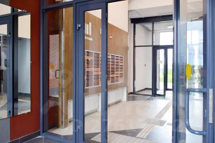 Вход в подъезд с парковки и из внутреннего двора. Колясочная. Внутренний закрытый двор. Домофон. Надёжная металлическая дверь. Интересная планировка квартиры.