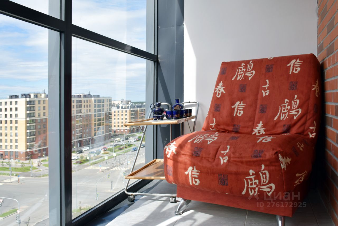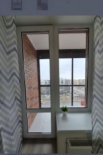 Просторная лоджия с панорамным остеклением, на полу плитка. Любуйтесь закатами, беседуйте за чашкой кофе. Кресло на лоджии при желании также раскладывается.